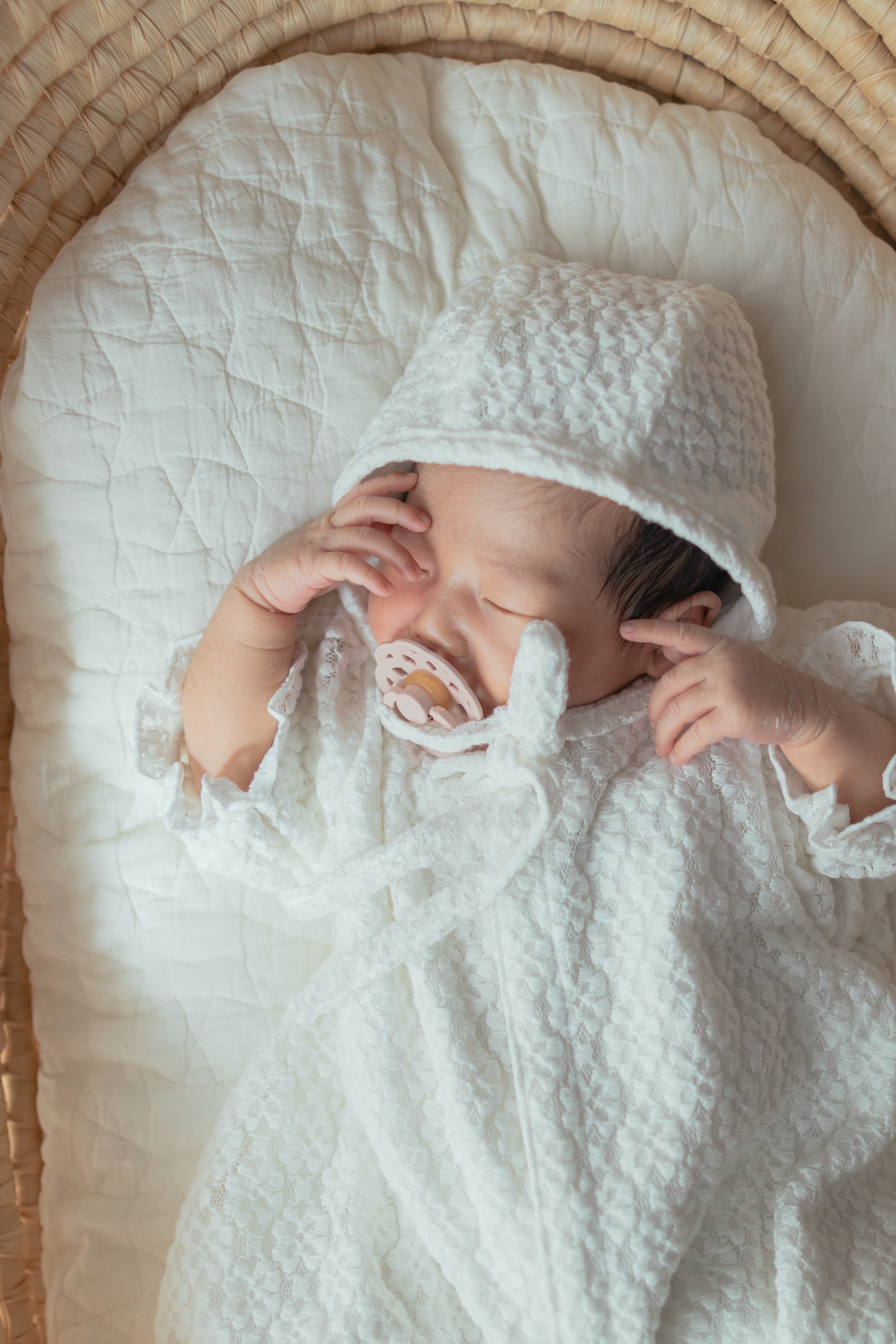 こだわりたっぷりの贅沢な退院着と合わせてこちらのボンネットもぜひ!