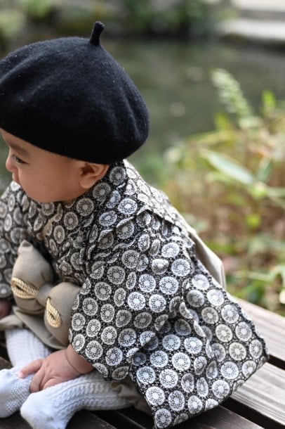 ○上着の結び目が見えないようハイウエストで着せてあげてください