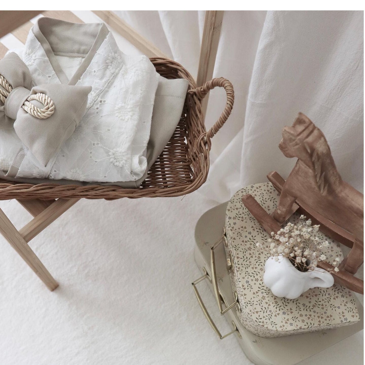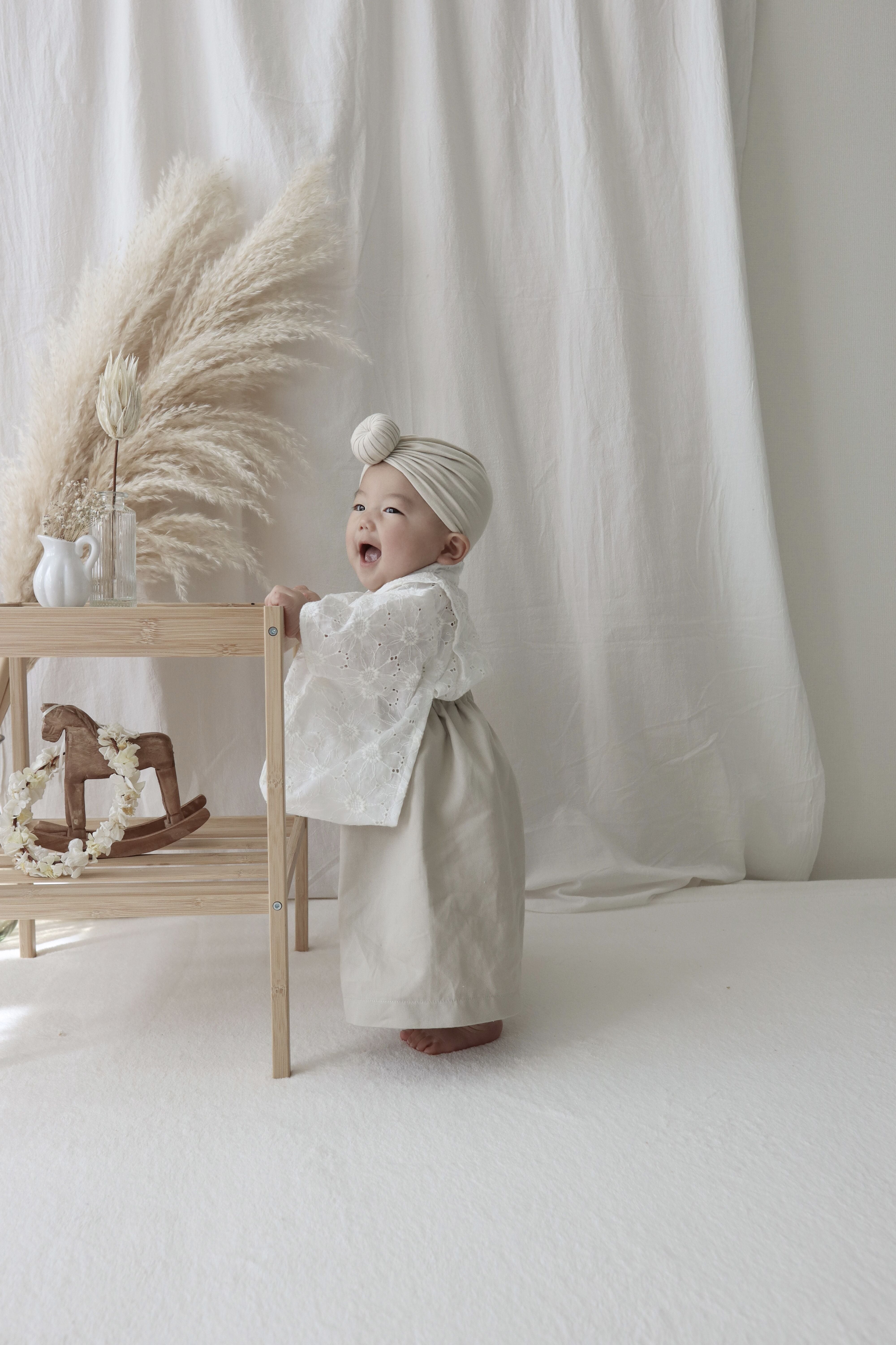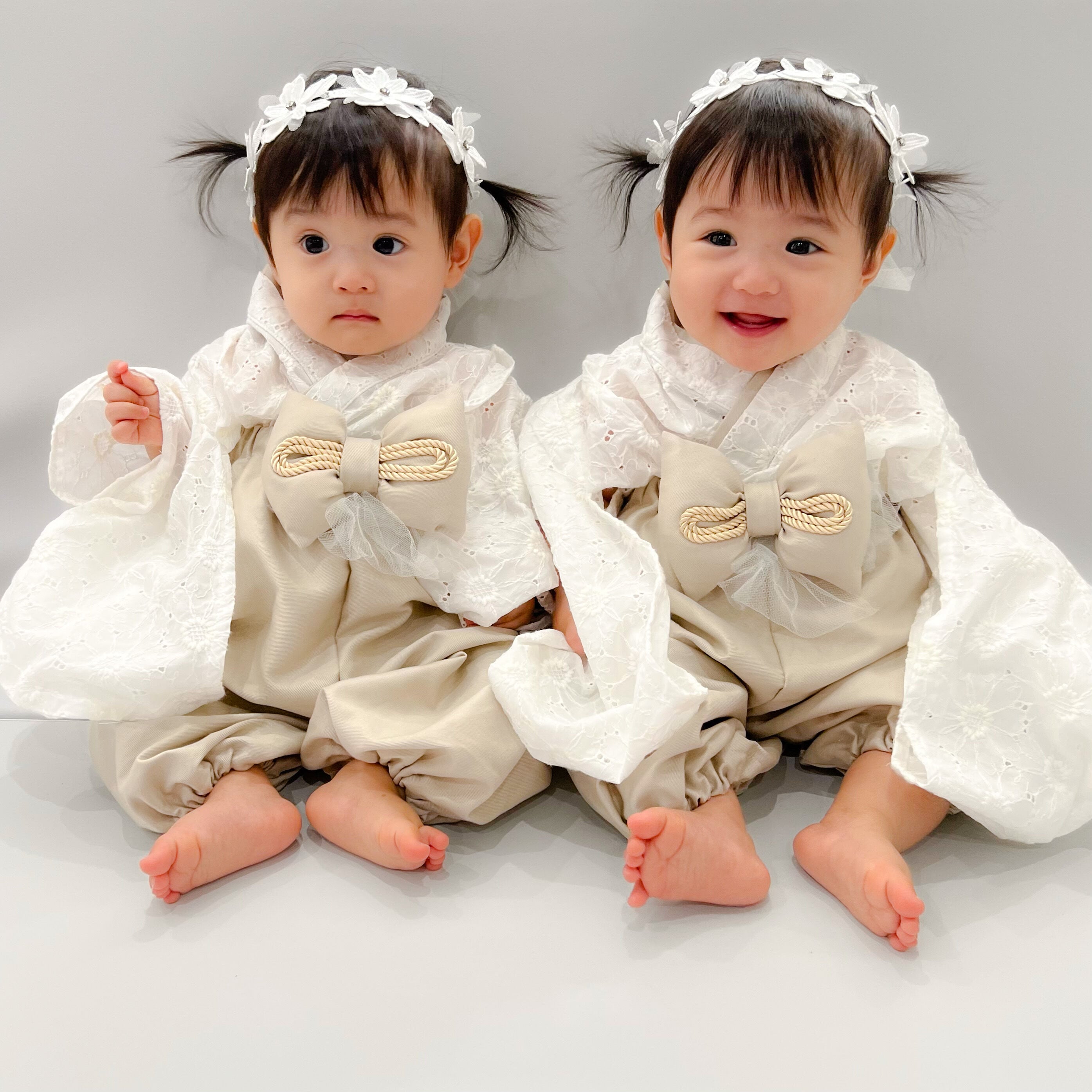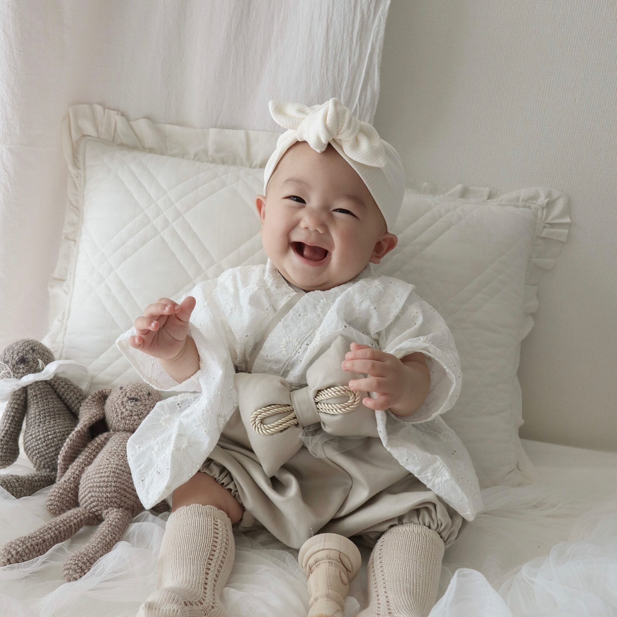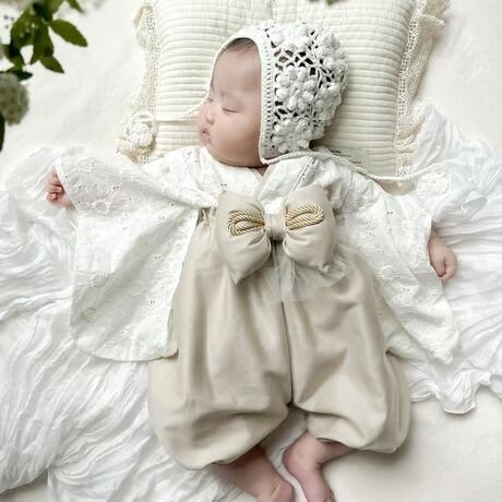 ○上着の結び目が見えないようハイウエストで着せてあげてください